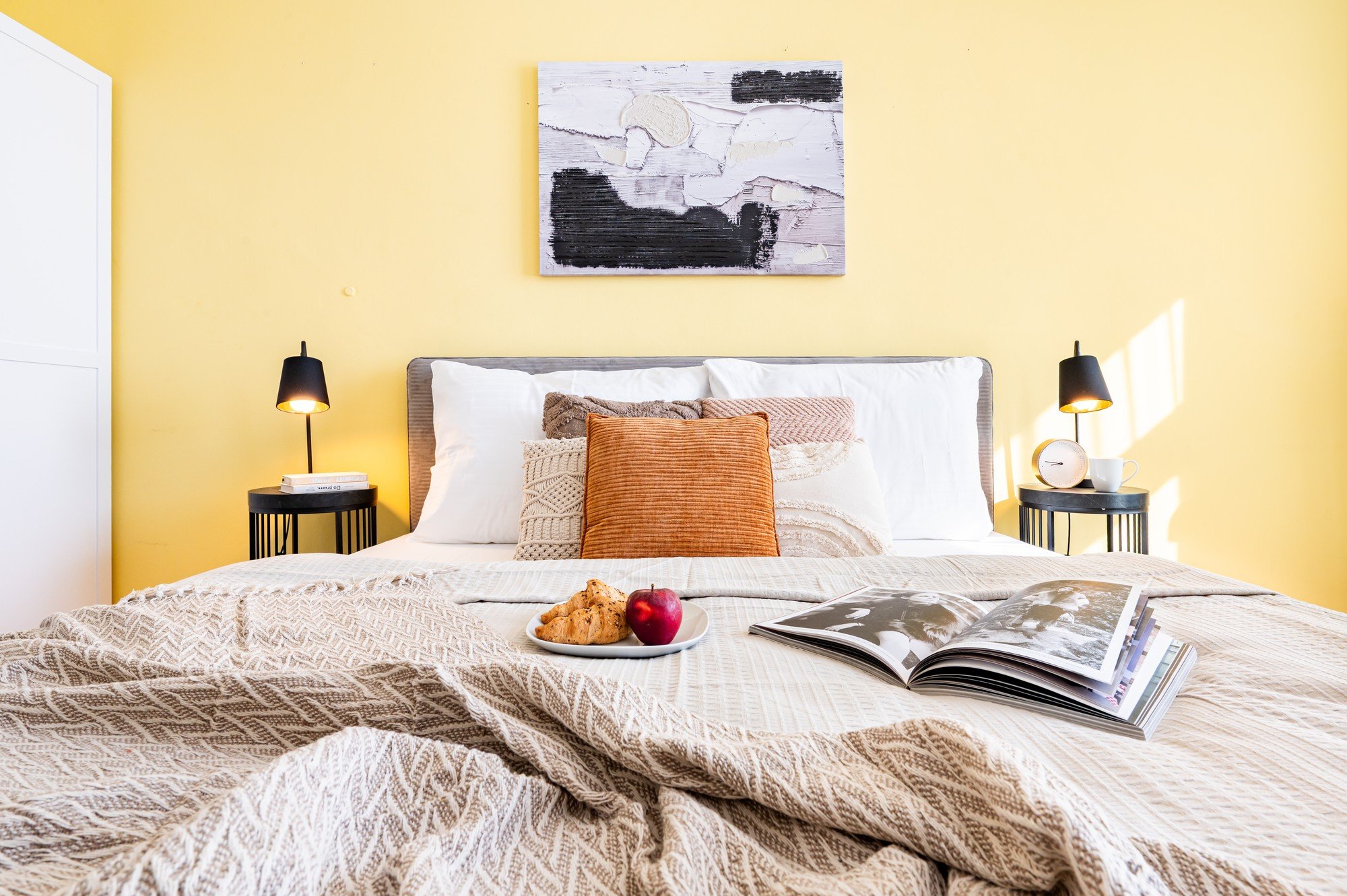 Ruum on värske, optimistlik ja harmooniline, soojade kollaste aktsentide, kihiliste tekstiilide ja detailidega, mis muudavad magamistoa hubaseks, kuid samas kaasaegseks lõõgastuskohaks.