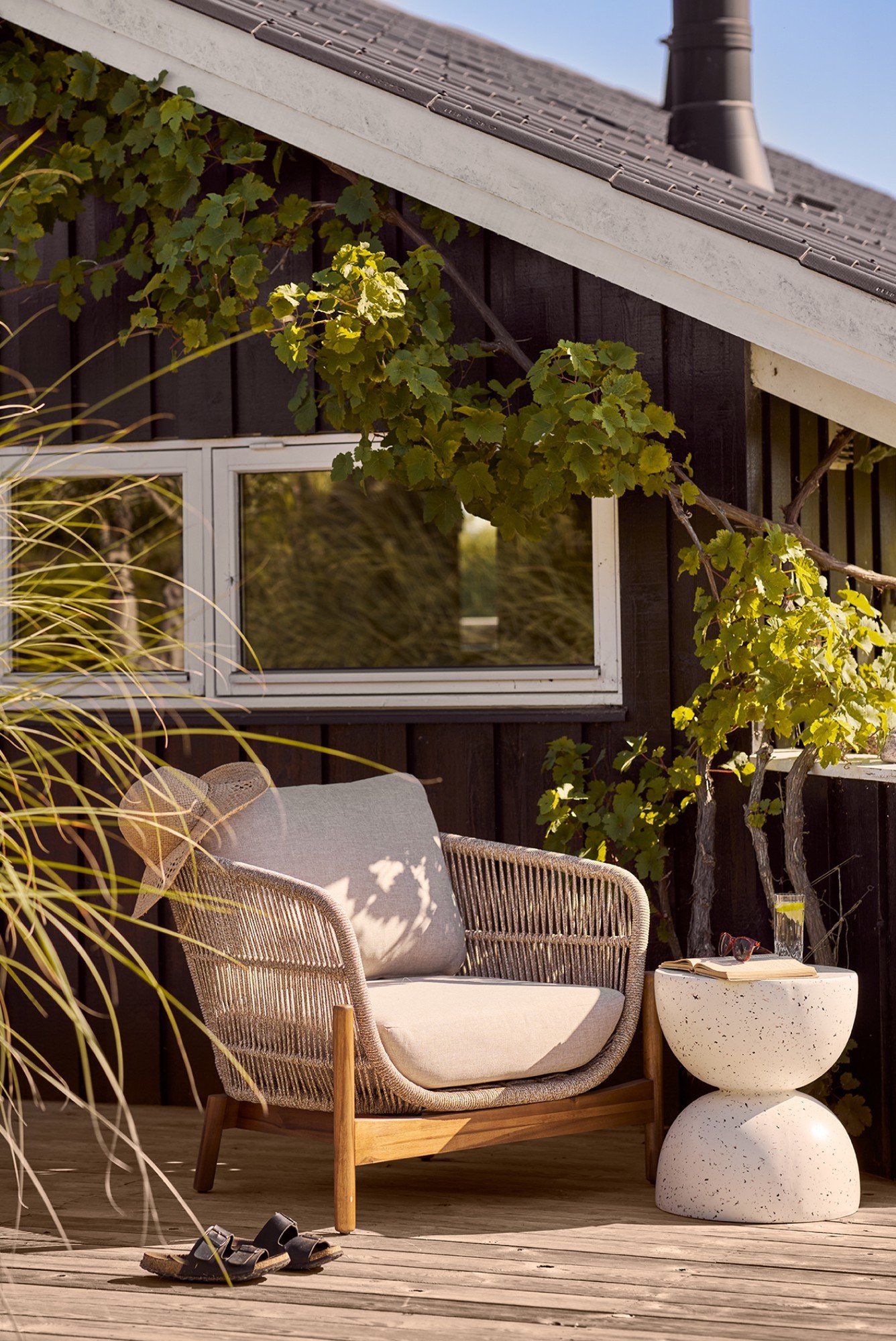 Při výběru barev a materiálů pro venkovní terasu berte v potaz, jak bude venkovní prostor ladit s interiérem domu. Použitím podobných barev, materiálů nebo doplňků vytvoříte dokonalou souhru.