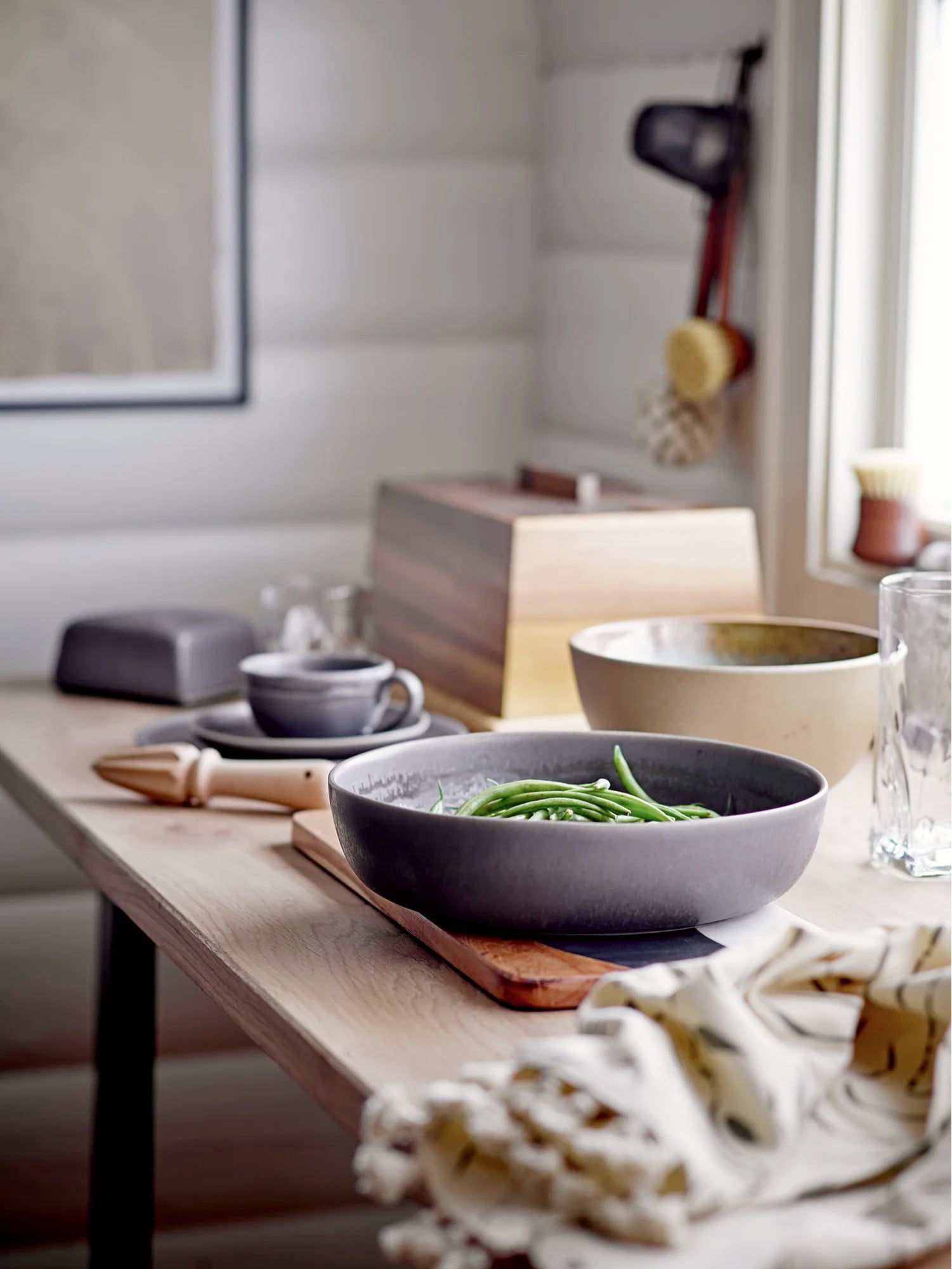 Otsi puhaste joontega puidust kummuteid, töötlemata viimistlusega laudu või kootud põrandakatteid, mis lisavad soojust ilma visuaalse segaduseta. Vali neutraalne värvipalett – valge, beež, soe hall, summutatud roheline. Lisa pehmet kontrasti indigo-, söe- või mullase roostevärvi keraamika või tekstiilidega. Eesmärk ei ole monotoonsus, vaid visuaalne harmoonia.