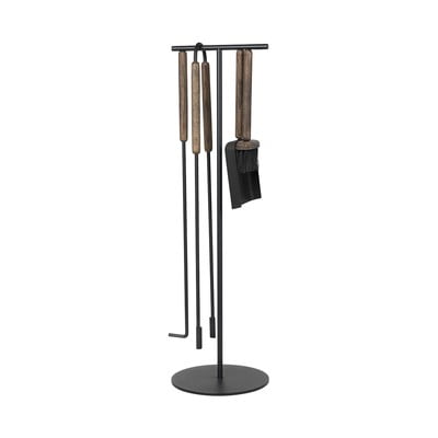 Puidust käepidemetel on integreeritud magnet, mis hoiab tööriistad kindlalt statiivil, kui neid ei kasutata. See muudab kaminakomplekti ka dekoratiivseks aksessuaariks. Labidas, pintsel ja pokk näevad välja, nagu lendaksid nad mööda metallkonstruktsiooni. Tangid riputatakse lihtsalt ülemisele astmele.