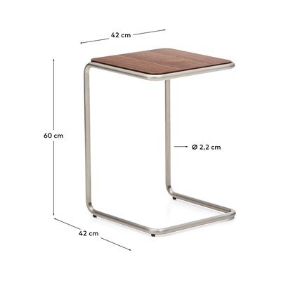 Selle pealispind on valmistatud 0,6 mm paksusest pähklispoonist, mis on kontrastiks harjatud roostevabast terasest torukujulise aluse omaga. See annab lauale moodsa ja rafineeritud ilme.