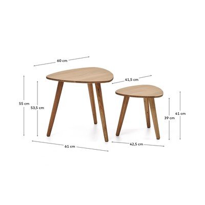 Kave Home Duvani abilauad on praktiline kahest lauast koosnev komplekt, mida saab hõlpsalt üksteise sisse paigutada. Need on valmistatud akaatsia täispuidust.