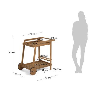 Kogu konstruktsioon on valmistatud akaatsiapuidust. Pind on töödeldud õliga, mis muudab selle niiskuse ja tolmu suhtes vastupidavamaks. Samal ajal paistab välja massiivse akaatsiapuu ilu. Käru sobib nii sise- kui ka välitingimustes kasutamiseks.