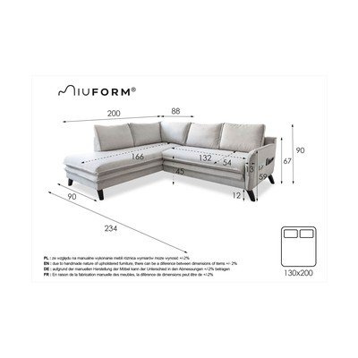 KokkupandavVasak nurk/L-kujulineAntratsiitneNeljakohalineLaius 234 cmSügavus 200 cmIstme sügavus 54 cm