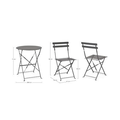 Bizzotto Austin söögikomplekt on valmistatud terasest ja sobib ideaalselt aias, rõdul või terrassil istumiseks. Komplekt koosneb ühest ümmargusest lauast ja kahest toolist. Tänu kokkupandavale disainile on seda lihtne transportida ja hoiustada.