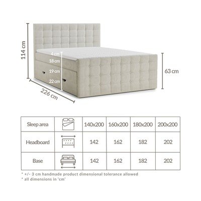 Kreemikas vedrumadratsiga voodi panipaigaga 160x200 cm Tasca - Maison de Rêve