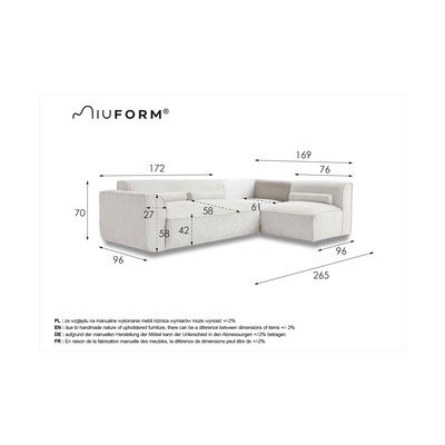 Parem nurk/L-kujulineBeežNeljakohalineLaius 265 cmSügavus 169 cmIstme sügavus 58 cm