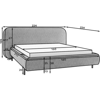 Hall polsterdatud kaheinimesevoodi koos panipaiga ja voodipõhjaga 160x200 cm Pointt - ELTAP