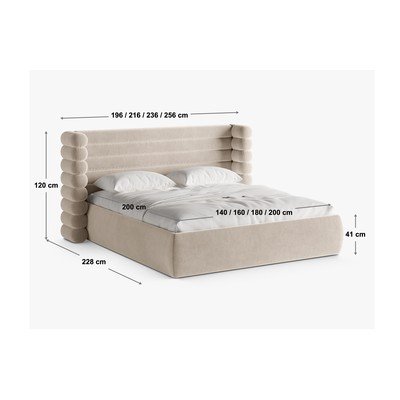 Beež polsterdatud kaheinimesevoodi koos panipaiga ja voodipõhjaga 200x200 cm Mount - Micadoni