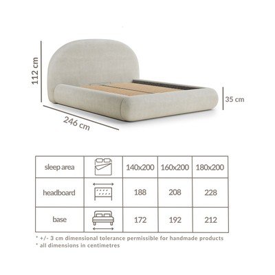 Kreemikas polsterdatud kaheinimesevoodi panipaiga ja liistudest voodipõhjaga 180x200 cm Maumere - Maison de Rêve