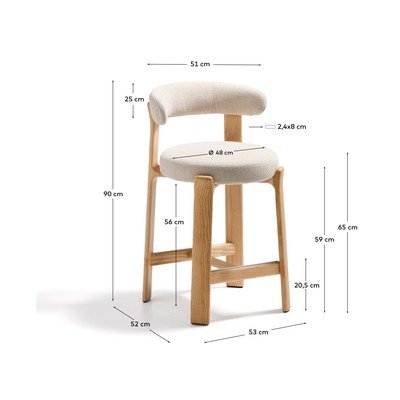 Kave Home Granite baaritool on elegantne ja praktiline täiendus moodsasse kööki või söögituppa. Selle konstruktsioon on valmistatud saare täispuidust, mis pärineb säästva metsanduse põhimõtete kohaselt majandatud metsadest, mida tõendab FSC™ 100% sertifikaat.