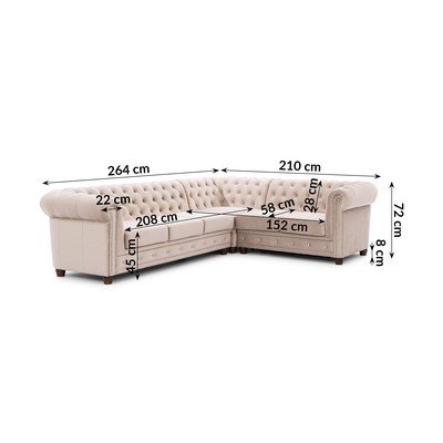 Beež sametist nurgadiivanvoodi (vasak nurk/L-kujuline) York Blik - Ropez