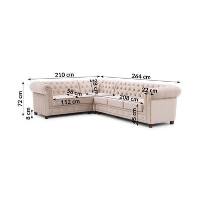 Beež sametist nurgadiivanvoodi (parem nurk/L-kujuline) York Blik - Ropez