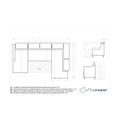 Beež sametist nurgadiivan (parem nurk) Sweet Harmony - Miuform