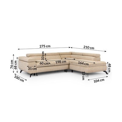 Beež šenill-nurgadiivan (parempoolne/L-kujuline) Marbeya - Ropez