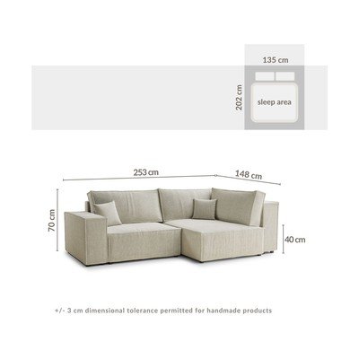 Kreemjas šenilldiivanvoodi/panipaigaga nurgadiivan (parempoolne/L-kujuline) Tonga - Maison de Rêve