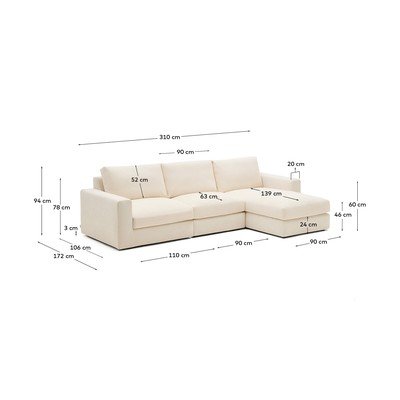 Kave Home Alea diivan ühendab endas stiili ja praktilisuse. Istmed on valmistatud 30 kg/m³ vahtplastist ja mikrokiudkihist, mis tagab istme keskmise kõvaduse ja tunde, nagu istuksin pilvel.