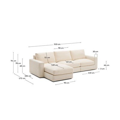 ŠenillVasak nurk/koos lamamistooligaJahBeežNeljakohalineLaius 310 cmSügavus 172 cmIstme sügavus 63 cm