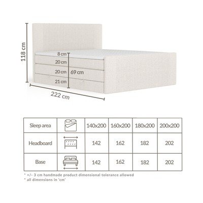 180x200 cmKoos hoiuruumigaPolsterdatudKoos madratsiga/koos kattemadratsigaKäsitsi valmistatud/lihtne kokkupanekBeež