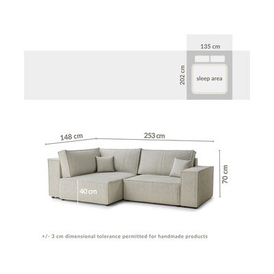 Kreemikas sametist diivanvoodi/panipaigaga nurgadiivan (vasak nurk/L-kujuline) Tonga - Maison de Rêve