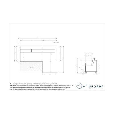 Tumeroheline velvetist diivanvoodi (paremas nurgas) Lofty Lilly - Miuform