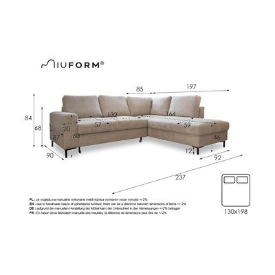 Beež velvetist diivanvoodi (paremas nurgas) Lofty Lilly - Miuform