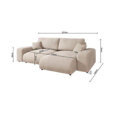 Beež velvetist nurgadiivan (muutuv) Justin - Ropez