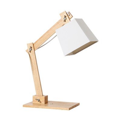 Bílá stolní lampa s dřevěnou konstrukcí SULION Erasmo
