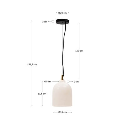 Kave Home Shenli ripplamp avaldab muljet oma minimalistliku disaini ja 15 cm läbimõõduga alabastrilisest lambivarjuga. Alabaster on looduslik materjal, mis loob ainulaadseid valgusefekte ja sooje varje, mis annavad teie interjöörile hubase atmosfääri. Tänu looduslike materjalide kasutamisele on iga tükk originaalne, oma tekstuuri ja varjundiga. Lamp sobib E27 pirniga, mille maksimaalne võimsus on 25 W. Pirn ei kuulu komplekti.