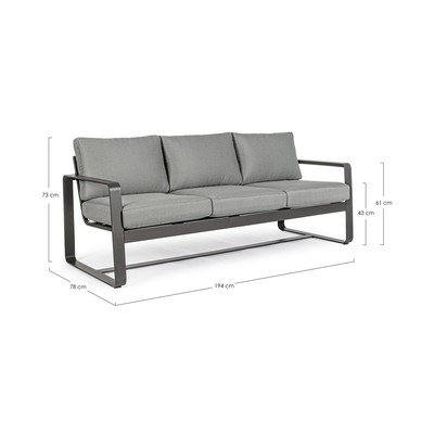 Lihtsa vastupidavast alumiiniumist raamiga diivanit täiendavad mugavad neutraalsed halli värvi padjad, mis täiendavad selle minimalistlikku välimust. Tänu alumiiniumi kasutamisele on diivan kerge ja samal ajal ilmastikukindel.