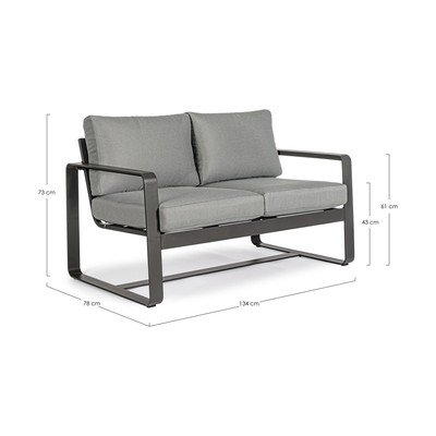 Lihtsa vastupidavast alumiiniumist raamiga diivanit täiendavad mugavad neutraalsed halli värvi padjad, mis täiendavad selle minimalistlikku välimust. Tänu alumiiniumi kasutamisele on diivan kerge ja samal ajal ilmastikukindel.