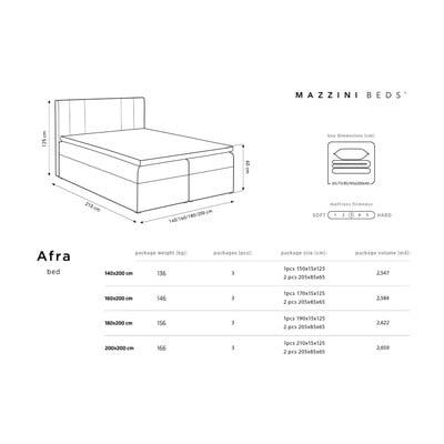 Mazzini Beds'i kaheinimesevoodite Afra abil on mugav magamine imelihtne. Ennekõike avaldab voodi muljet oma kõrge pealae disainiga. Mõlema voodi all on hoiukapp, kuhu mahub lisaks varutekkidele ka muid, näiteks hooajalisi esemeid. Pind on sametine, mistõttu on see meeldiva puudutusega ning samas tugev ja kulumiskindel.