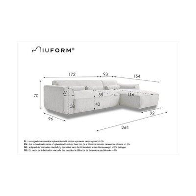 Parem nurk/koos lamamistooligaTumehallKolmekohalineLaius 264 cmSügavus 154 cmIstme sügavus 58 cm