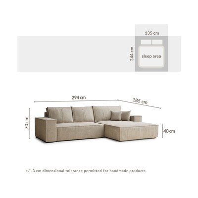 Kreemjas šenilldiivanvoodi/panipaigaga nurgadiivan (parem nurk/diivanvoodiga) Maze - Maison de Rêve
