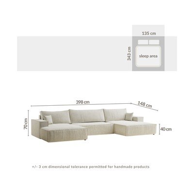 Kreemjas šenilldiivanvoodi/panipaigaga nurgadiivan (U-kujuline) Kyoto - Maison de Rêve