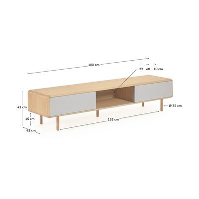 Kave Home Anielle TV-alus on elegantne täiendus teie elutuppa. Selle konstruktsioon on valmistatud täispuidust ja saarespoonist, mis annab sellele loomuliku ilme ja vastupidavuse.
