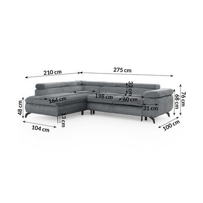 Hall velvetist nurgadiivan (parempoolne/L-kujuline) Marbeya - Ropez