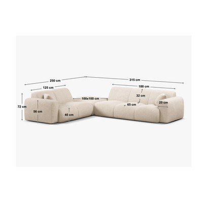 Valge bukleekangast nurgadiivan (vasak nurk) Molino - Micadoni Home