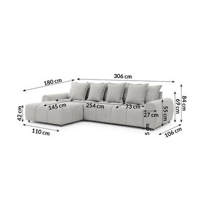 Valge nurgadiivan (vasak nurk) Albane - Ropez