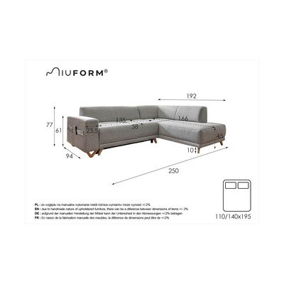 Beež nurgadiivanvoodi panipaigaga (parempoolne/L-kujuline) Classy Sophie – Miuform