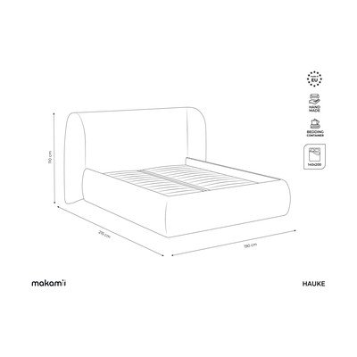 Helehall polsterdatud kaheinimesevoodi koos voodipõhja ja panipaigaga 140x200cm Hauke - Makamii