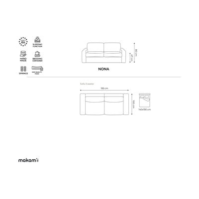 Helehall sametine lahtikäiv diivan 195 cm Nona – Makamii