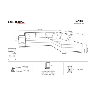 Kogege mugavust koos Cosmopolitan Designiga. Yorki diivaniga saate muuta elutoa hetkega külalistetoaks. See on ruumikas isegi kokkuvoldituna ja lihtsa disainiga, mida saate hõlpsasti ülejäänud majapidamisega sobitada.
