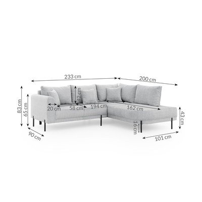 Beež šenillist nurgadiivan (parempoolne/L-kujuline) Mauris - Ropez