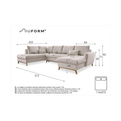 Diivan Lagom ühendab endas lihtsuse, funktsionaalsuse ja esteetika. U-kujuline kuju muudab selle suureks ja avaraks. Tänu oma põhikonstruktsioonile ja kõrgetele pöögipuust jalgadele on see stabiilne ja toob interjöörile skandinaavia stiili. Sellel on kokkupandav režiim ja hoiuruum. Seega saate seda kasutada külalisvoodina. Laske Miuformi kaubamärgil teid pimestada.