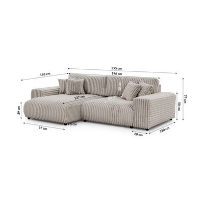 Kreem velvetist nurgadiivanvoodi koos panipaigaga (vasak nurk) Sarina - Ropez