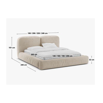 Beež polsterdatud kaheinimesevoodi koos panipaiga ja voodipõhjaga 200x200 cm Martina - Micadoni