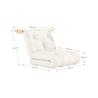 Tugitool on varustatud nelja seinaklambriga, mis hoiavad seda kindlalt paigal, võimaldades samal ajal toimida ruumis dekoratiivse elemendina. Istumiseks viige tool lihtsalt madalamasse asendisse. Kui vajate magamiskohta, laotage see lihtsalt põrandale laiali. Kronsteine ​​saab paigaldada erinevatesse ruumidesse, võimaldades tooli vastavalt vajadusele liigutada. Disainlatt on 115 cm lai.