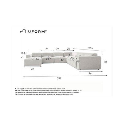 Parem nurk/"U" kujuRohelineMuuLaius 337 cmSügavus 265 cmIstme sügavus 58 cm