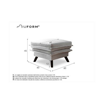 Miuformi kaubamärk on uhke oma eripärase disaini üle, milleks on see jalutusmööbel sarjast Charming Charlie. Stabiilsus on tagatud tänu pöögipuidust jalgadele. Tänu oma huvitava välimuse ja paksu äärisega jalatoele näeb see välja ühe dekoratsioonina ja seda saab kasutada ka väikese lauana.